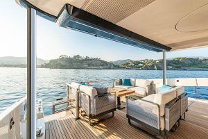 The new Navetta 70 introduces innovative design elements, elegant and on-trend, without forgoing some distinctive features of the Absolute brand, such as the iconic side glass railings.