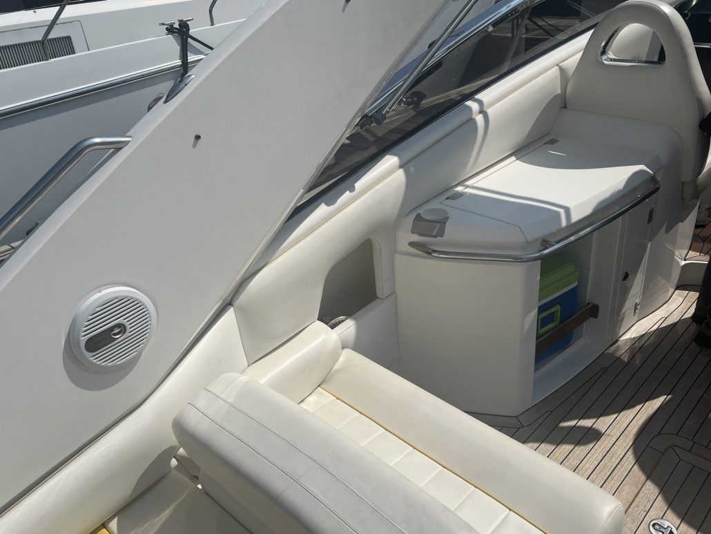 Performance & Power: The Superhawk 43 is equipped with powerful twin engines (typically providing impressive speed and acceleration. It is capable of reaching speeds over 40 knots, making it a thrilling boat for those who enjoy fast cruising. Luxury & Comfort: The interior of the Superhawk 43 is designed with luxurious materials and finishes, offering a refined experience. It includes a spacious cockpit, comfortable seating, and high-end amenities. The cabin has sleeping accommodations for up to 4 people, along with a well-equipped galley and head. Innovative Design: The Superhawk 43 features a striking, sleek exterior design, with a wide beam and distinctive styling. It has a large open cockpit space ideal for socializing, as well as sunbathing areas on the foredeck. The combination of stylish lines and functional deck layout makes it both an attractive and practical boat.Have questions?
